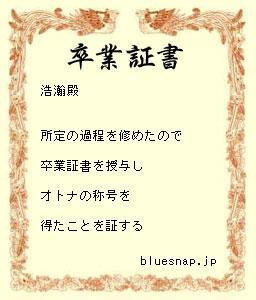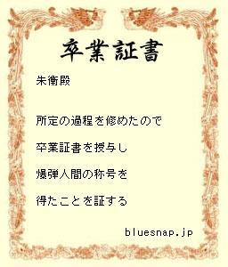 頭が疲れたので、ちょっと「卒業証書メーカー」(ttp://bluesnap.jp/unique/)で遊んでみました。