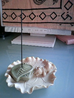 葉っぱの香立だけだと灰が落ちるので、カエルの灰皿も買ってみました。二つ合わせても\1000未満。ししし♪