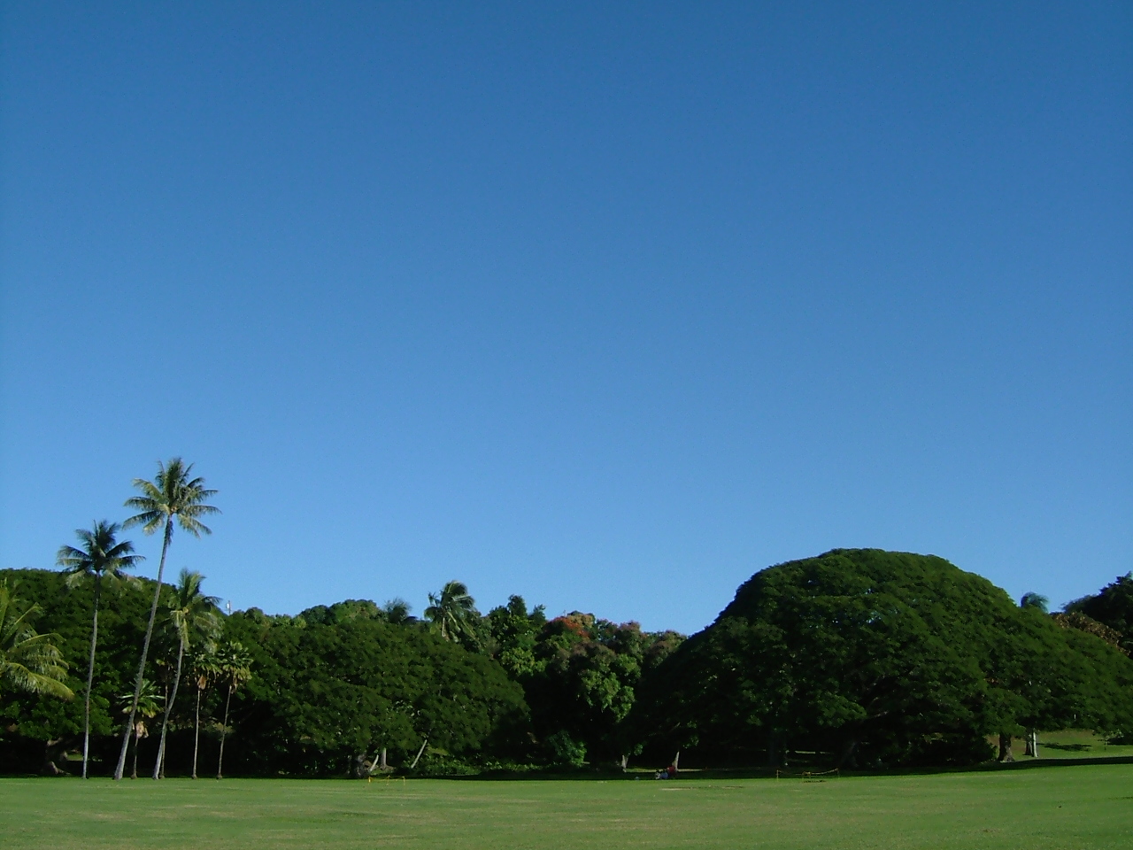 モアナルアガーデン。 見事な青空です。 すっごい広くて和める場所でした。 キャッチボールとかやってる人がいたり。 |