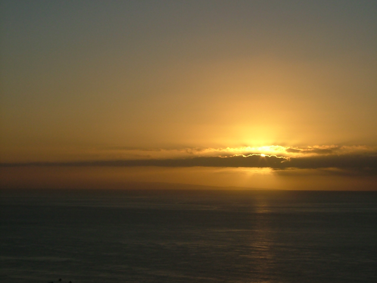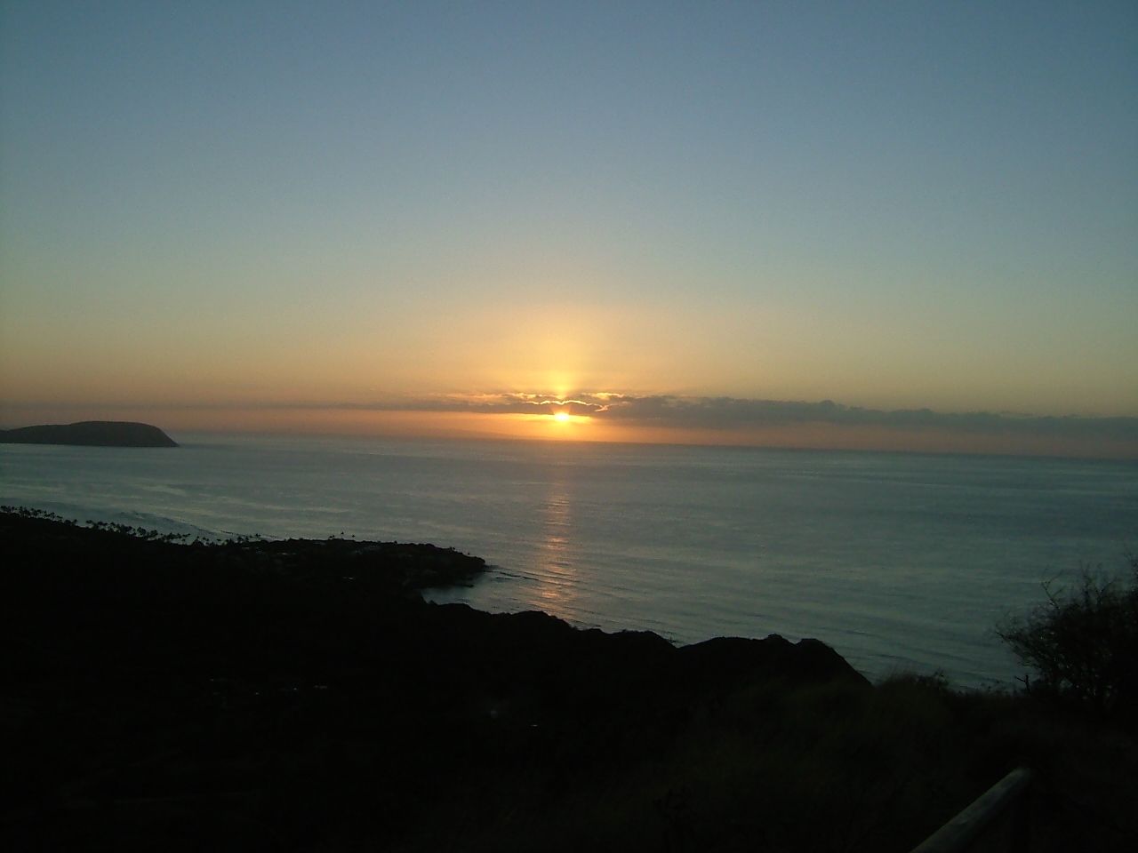 夕日ではありません。 間違いなく朝日です。 さあっと暗くなって、一気に昇っていきました。 水平線上に昇りきったときは鳥肌が立つほど綺麗でした。 |