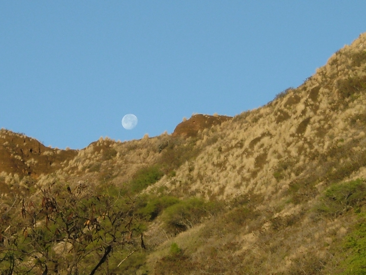 登山口で撮った月。